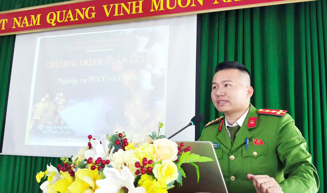 Tại buổi tập huấn, Đại úy Ngô Hữu Đại – cán bộ Đội chữa cháy và cứu nạn cứu hộ khu vực 5, Phòng Cảnh sát PCCC&CNCH Công an tỉnh Thanh Hóa – đã truyền đạt nhiều kiến thức quan trọng như: