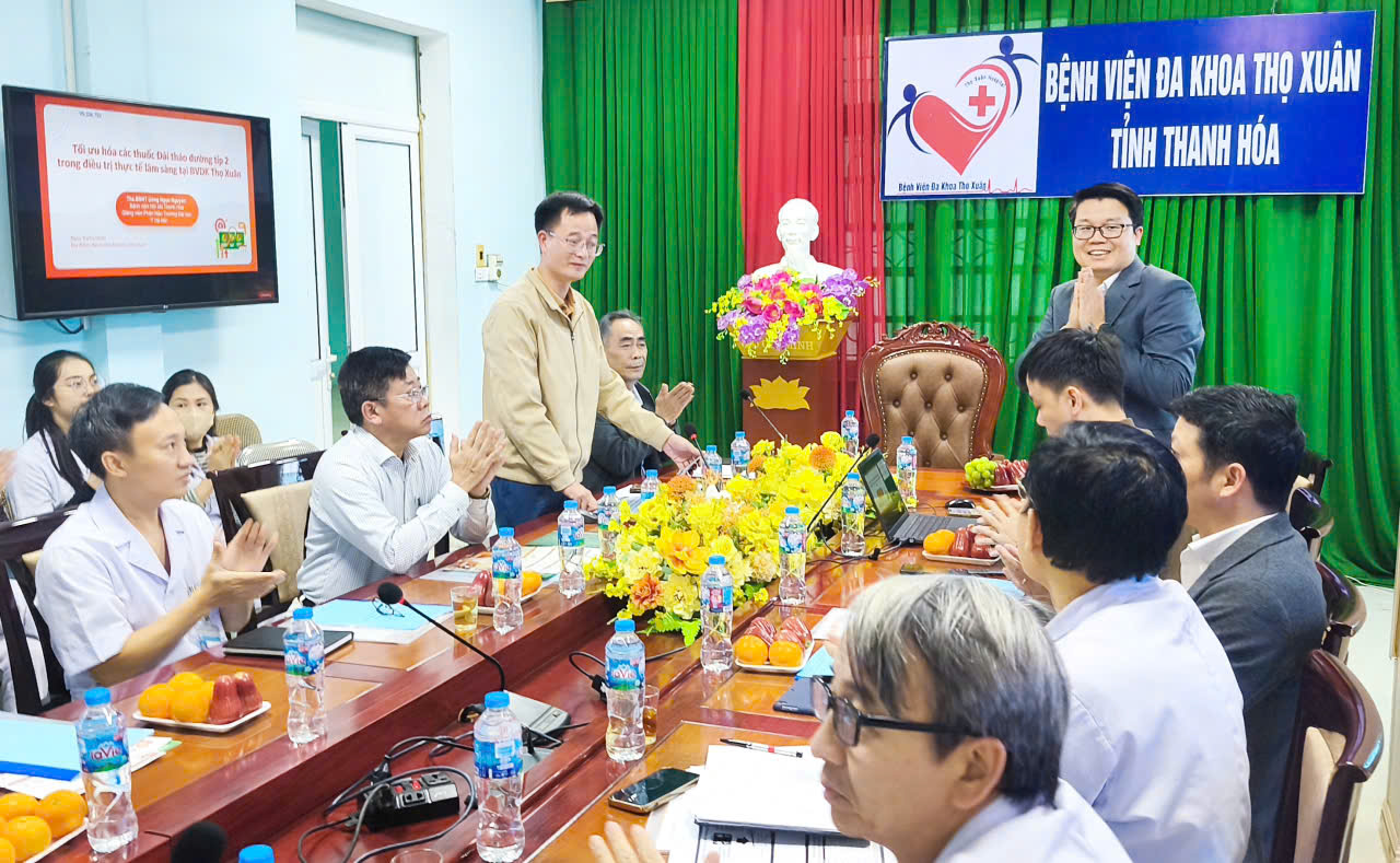 Tham dự hội thảo có BS CKII Phùng Sỹ Thường – Giám đốc Bệnh viện Đa khoa Thọ Xuân; PGS.TS. Nguyễn Thành Hải – Giảng viên Trường Đại học Dược Hà Nội; ThS.BSNT Uông Ngọc Nguyên – Bệnh viện Nội tiết Thanh Hóa cùng Ban Giám đốc bệnh viện và toàn thể cán bộ, y bác sĩ Bệnh viện Đa khoa Thọ Xuân.