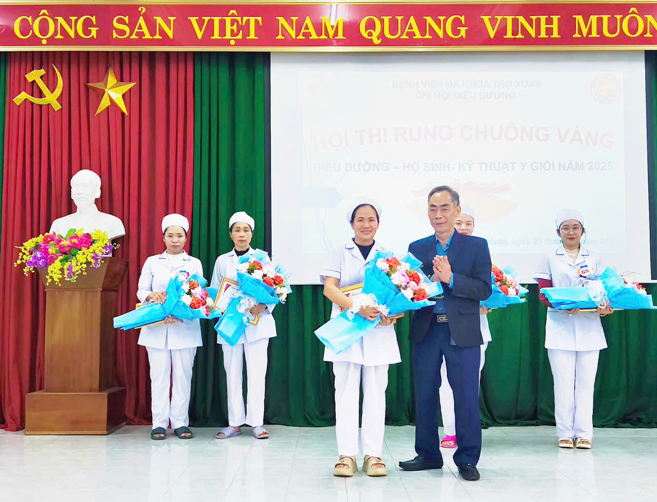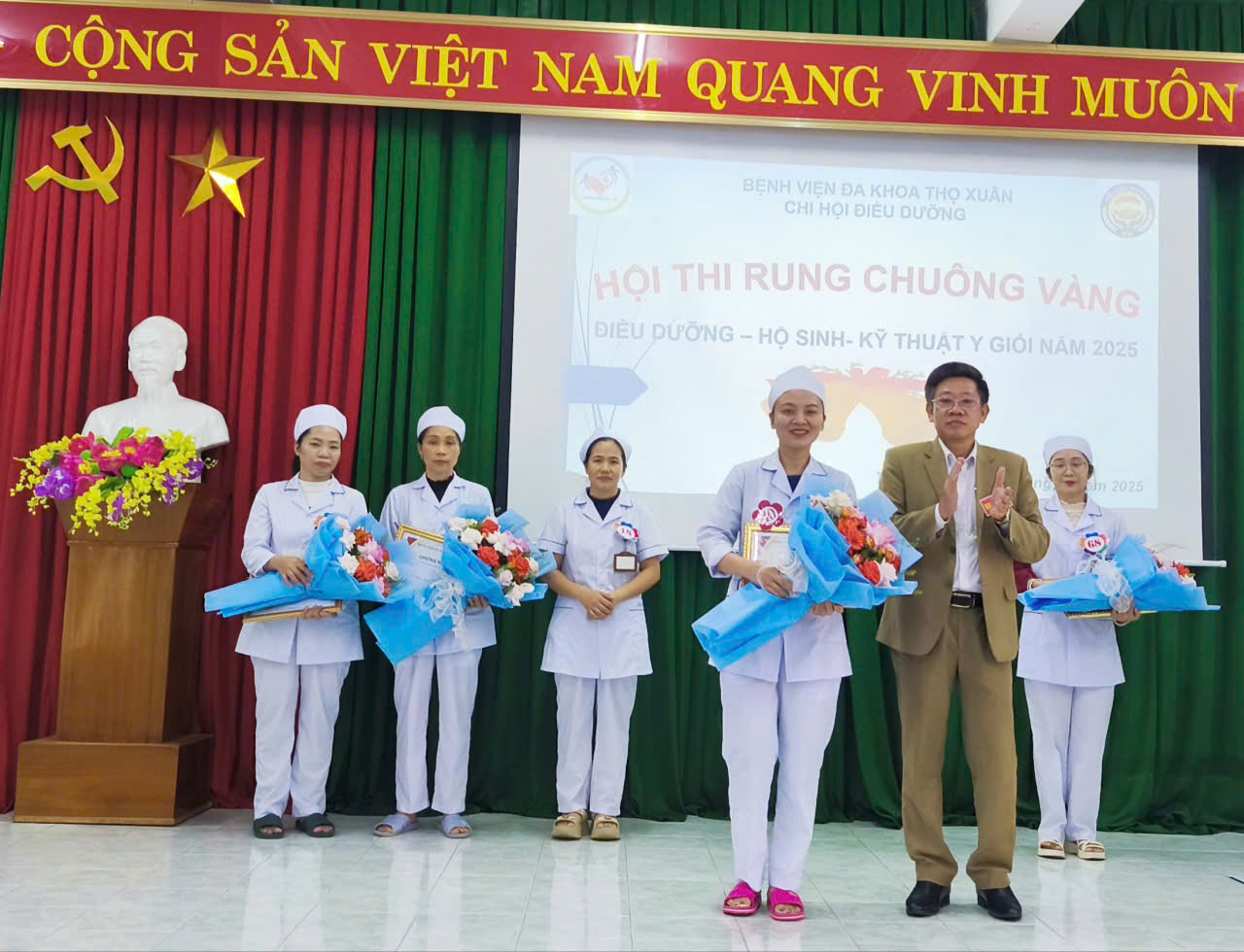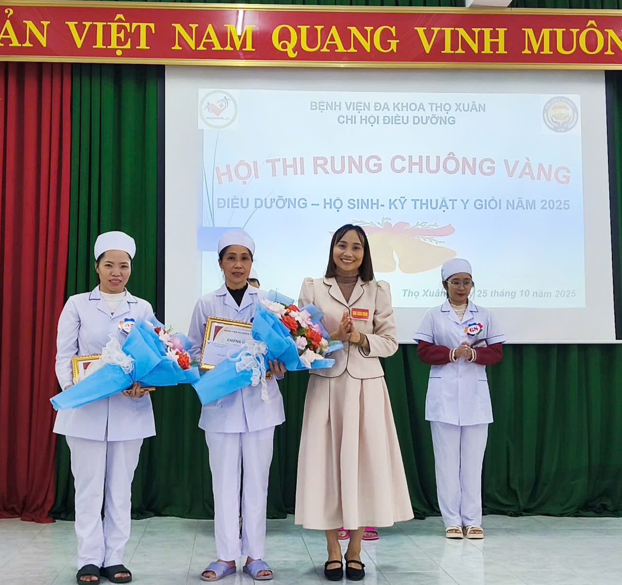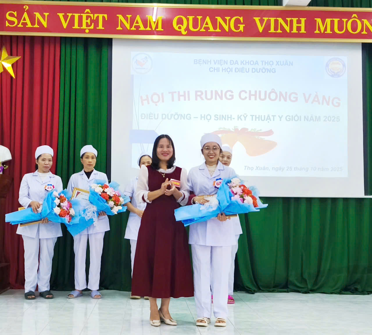 Hội thi “Rung Chuông Vàng Điều dưỡng – Hộ sinh – Kỹ thuật y năm 2025” đã khép lại thành công tốt đẹp, để lại nhiều ấn tượng sâu sắc. Đây không chỉ là sân chơi bổ ích, mà còn là cơ hội để đội ngũ điều dưỡng, hộ sinh, kỹ thuật viên thể hiện năng lực, tinh thần đoàn kết và niềm tự hào nghề nghiệp – góp phần khẳng định vị thế của Bệnh viện Đa khoa Thọ Xuân trong công tác chăm sóc sức khỏe nhân dân.