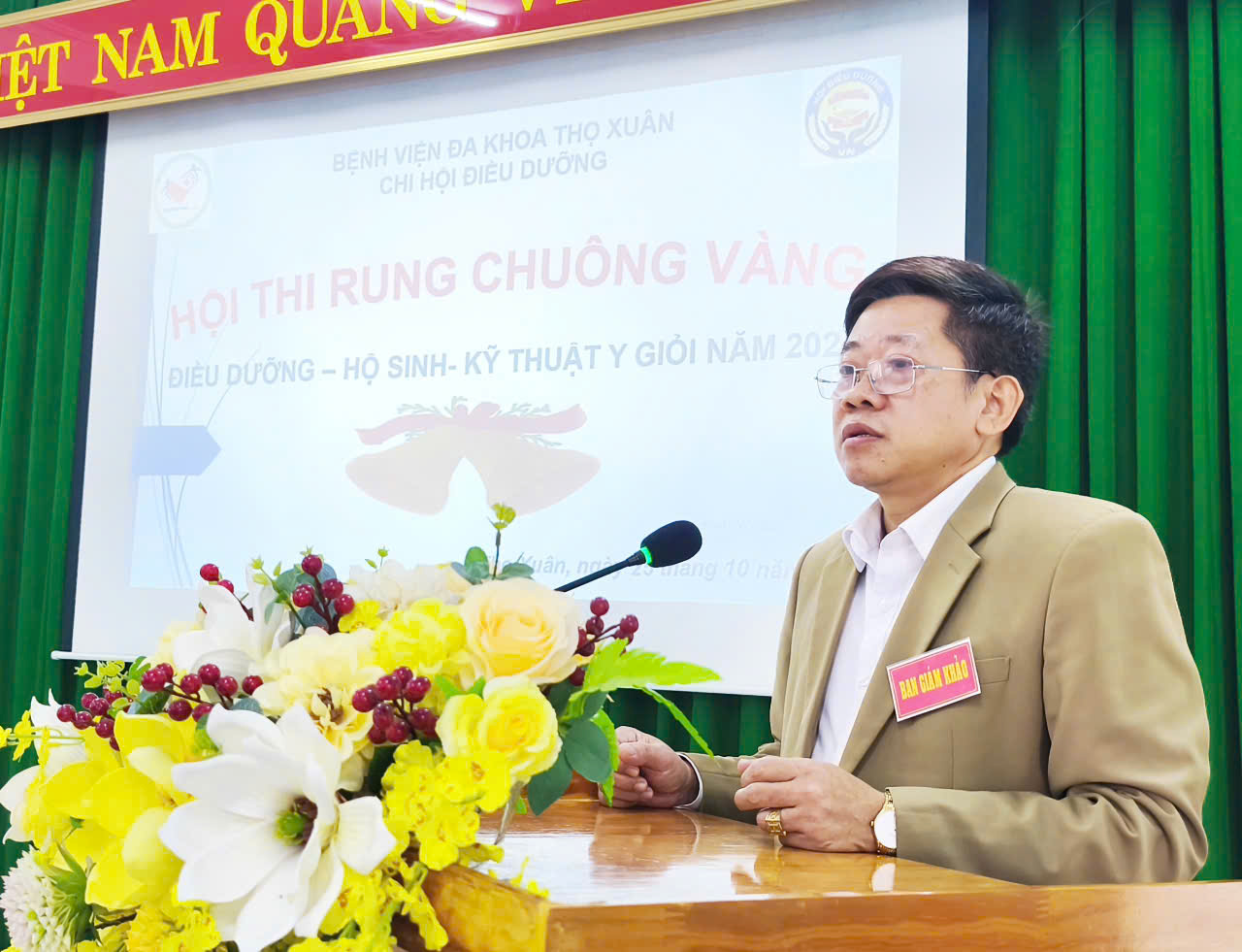 Phát biểu chỉ đạo tại hội thi, Bác sĩ CKII Lê Văn Huyên – Trưởng Ban Giám khảo, phó Giám đốc bệnh viện ghi nhận và biểu dương tinh thần tham gia tích cực, sáng tạo của các thí sinh và Ban Tổ chức. Đồng chí khẳng định: “Hội thi Rung chuông vàng là hoạt động ý nghĩa, góp phần tạo động lực cho đội ngũ Điều dưỡng – Hộ sinh – Kỹ thuật y không ngừng học tập, trau dồi kiến thức và kỹ năng thực hành, qua đó nâng cao chất lượng chăm sóc, phục vụ người bệnh ngày càng tốt hơn.”