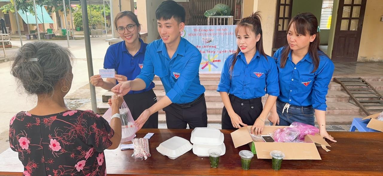 Nhân dịp lễ vu lan và chào mừng kỷ niệm 78 năm ngày Quốc Khánh Việt Nam 2-9, sáng ngày 26/8/2023 vừa qua, nhóm Thiện Nguyện Thọ Xuân đã phối hợp cùng tổ công tác xã hội, tổ dinh dưỡng tổ chức trao tặng 150 suất cơm “0 đồng” tới người bệnh ngay tại căng tin bệnh viện.