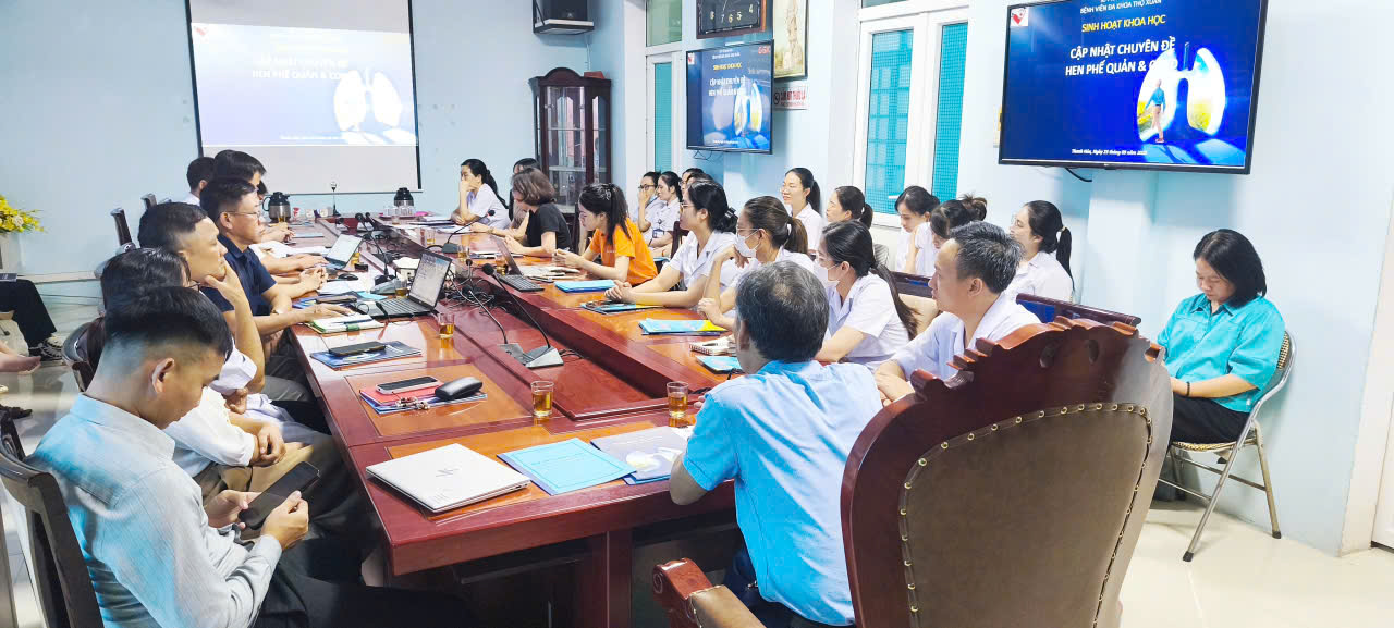 Chiều ngày 23/09/2025, Bệnh viện Đa khoa Thọ Xuân đã tổ chức Hội thảo sinh hoạt khoa học với chủ đề: “Cập nhật chuyên đề hen phế quản và COPD”. Đây là hoạt động chuyên môn có ý nghĩa quan trọng, nhằm nâng cao năng lực chẩn đoán – điều trị, cập nhật kiến thức mới nhất trong quản lý các bệnh hô hấp mạn tính, đặc biệt là hen phế quản và bệnh phổi tắc nghẽn mạn tính (COPD).