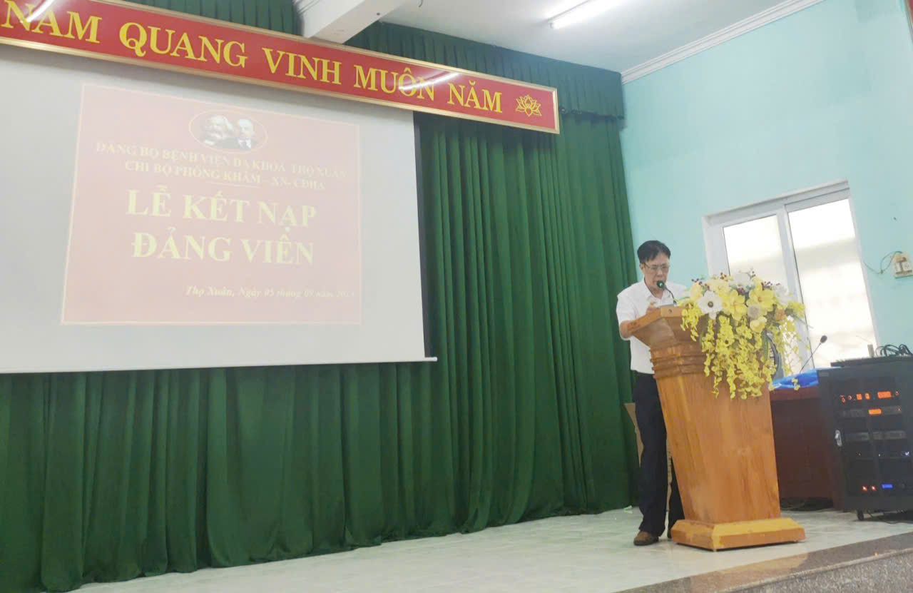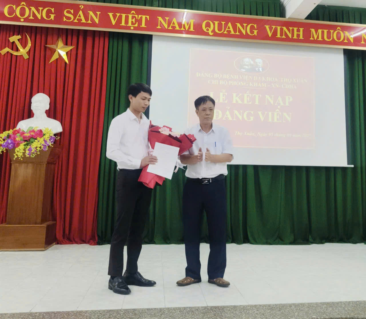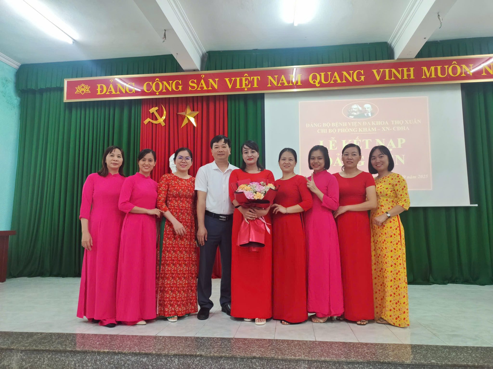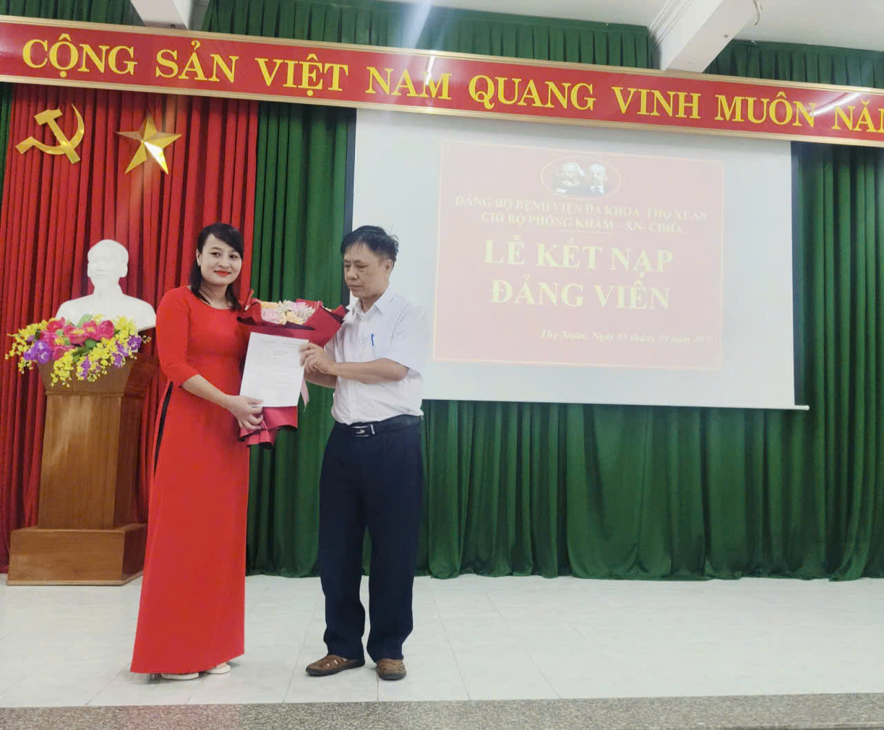 Thực hiện kế hoạch công tác phát triển và xây dựng Đảng năm 2025, chiều ngày 11/9/2025, Chi bộ Phòng khám – Xét nghiệm- CĐHA trực thuộc Đảng bộ Bệnh viện ĐK Thọ Xuân đã long trọng tổ chức lễ kết nạp đảng viên mới cho 2 quần chúng ưu tú: Bác sĩ Lê Viết Dũng ( Bs Chẩn đoán hình ảnh- PK bệnh Xuân Lai ); Đ/c Lê Thị Nga ( Điều dưỡng khoa Phòng khám bệnh trung tâm)