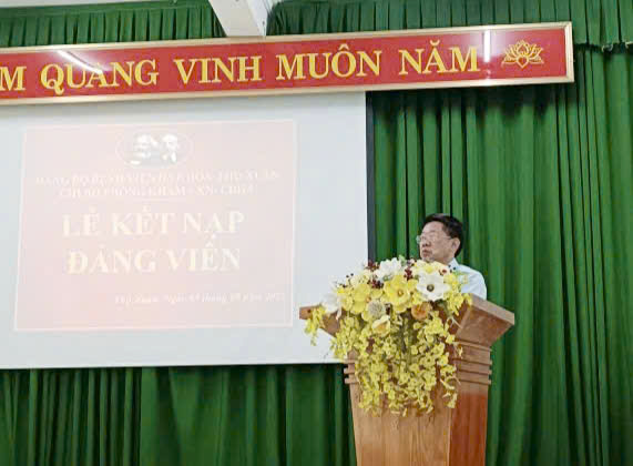 Phát biểu tại buổi lễ kết nạp,Đ/c Lê Văn Huyên – Phó Bí thư Đảng ủy – Phó Giám đốc bệnh viện đã chúc mừng 2 Đảng viên mới sau một thời gian được bồi dưỡng, phấn đấu không ngừng, đã được vinh dự đứng trong hàng ngũ của Đảng Cộng sản Việt Nam .
